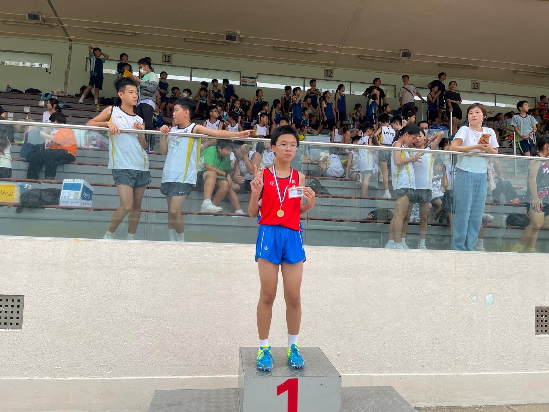 ‧ 6B林軒彤女甲100米冠軍,並以12.77秒打破全港小學校際田徑比賽紀錄