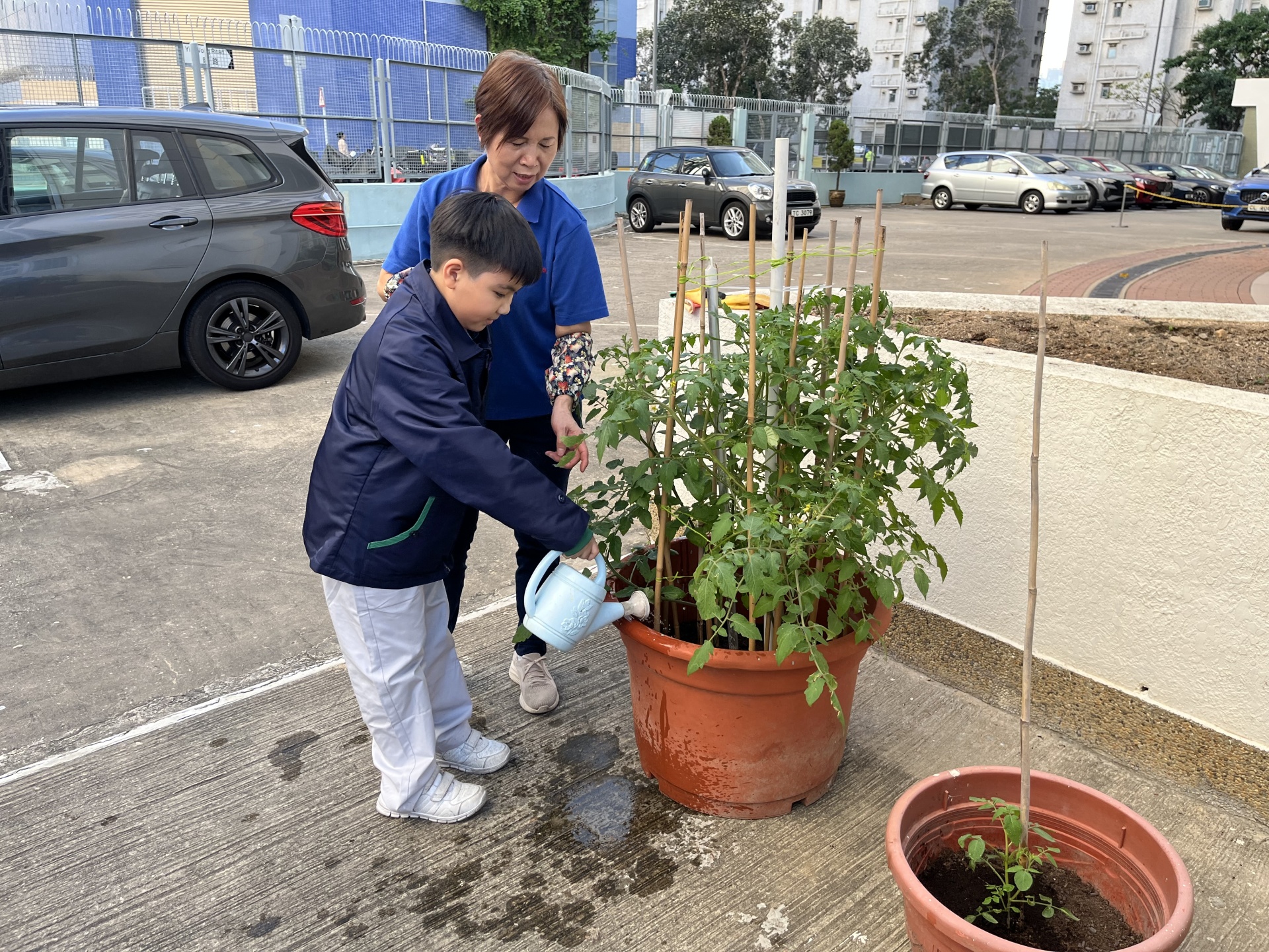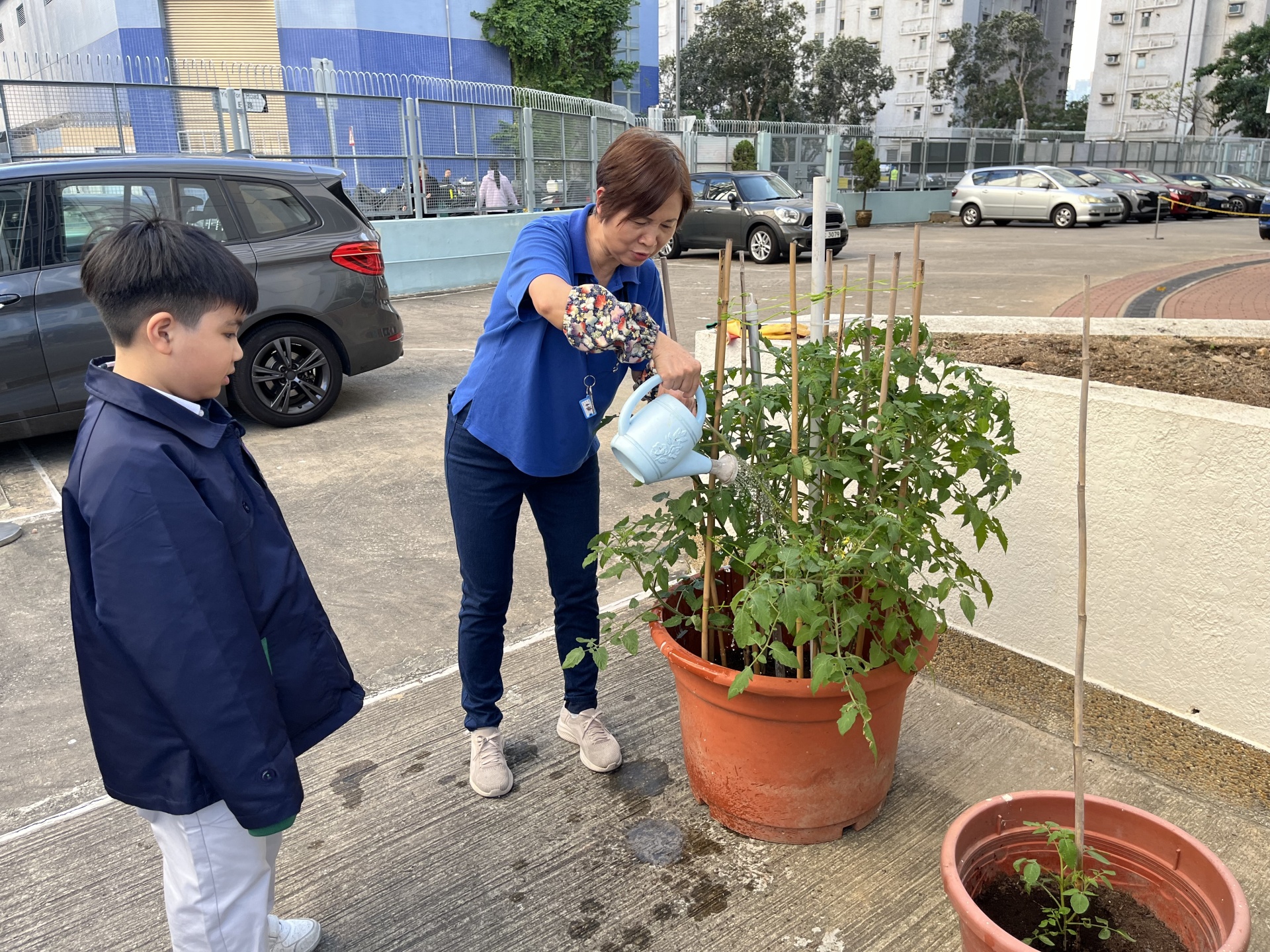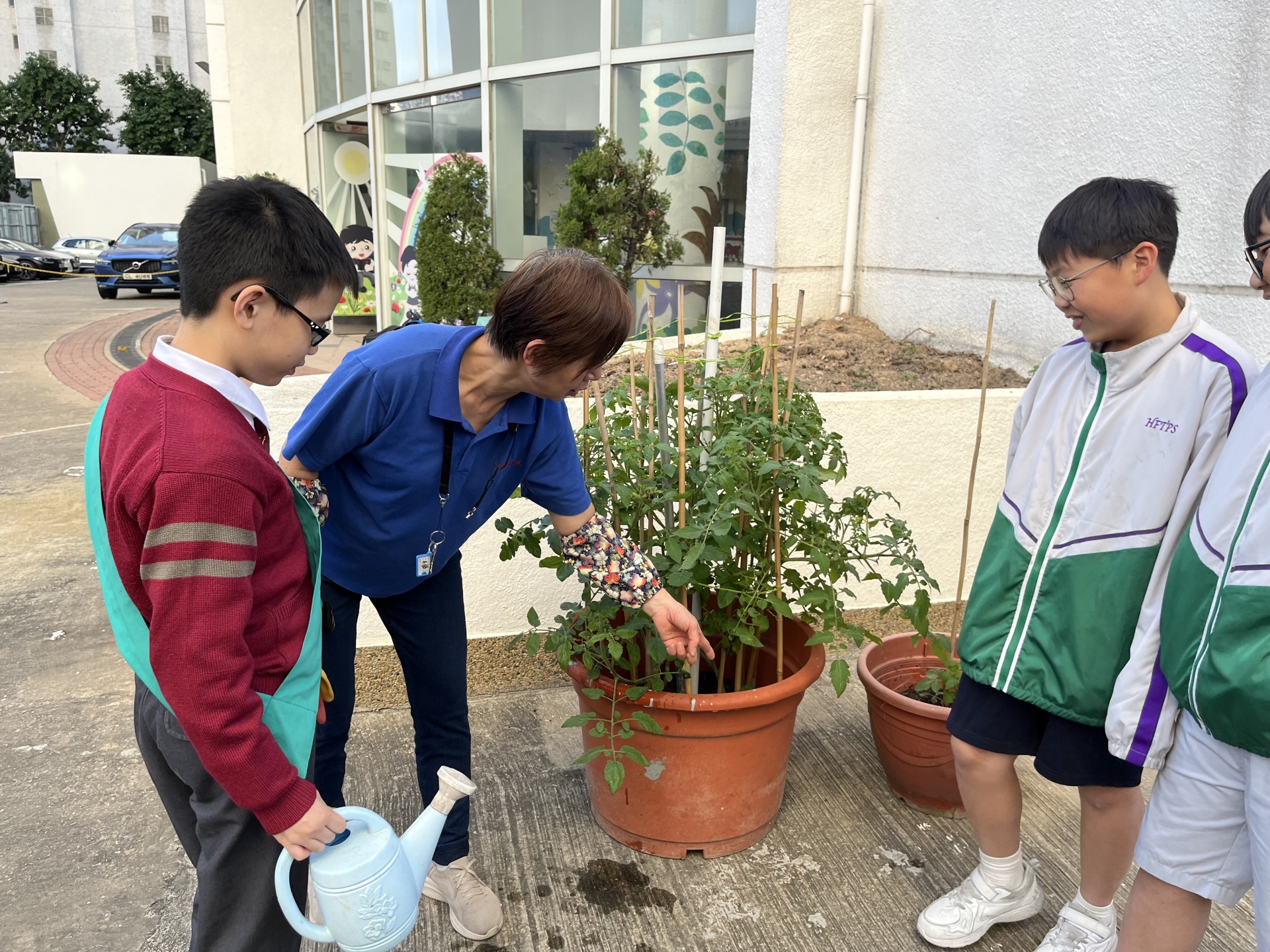學校的園圃種植了太空育種的番茄和普通番茄。同學們親自參與了種植的過程,他們在燕姐的指導下學會了正確的澆水技巧。