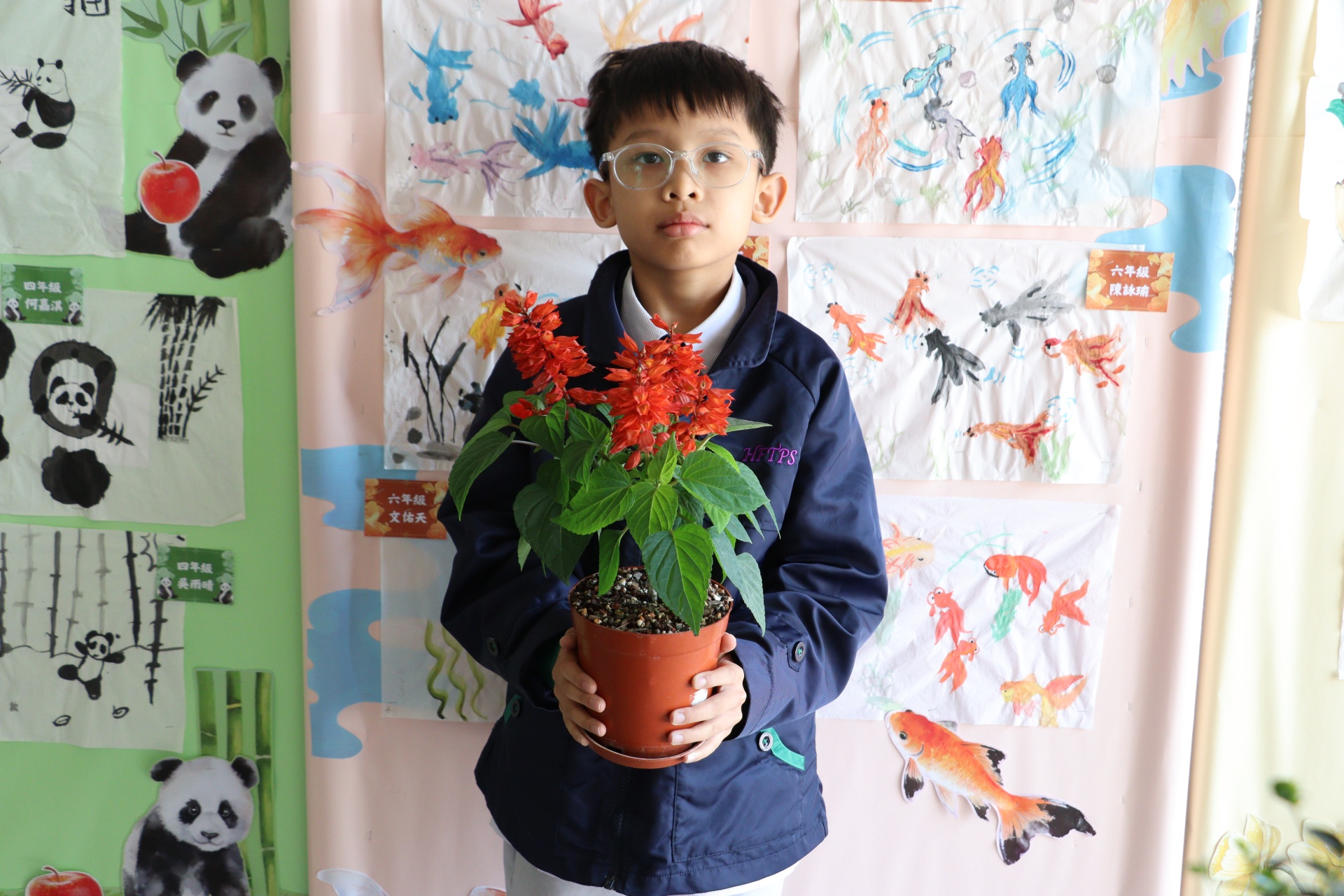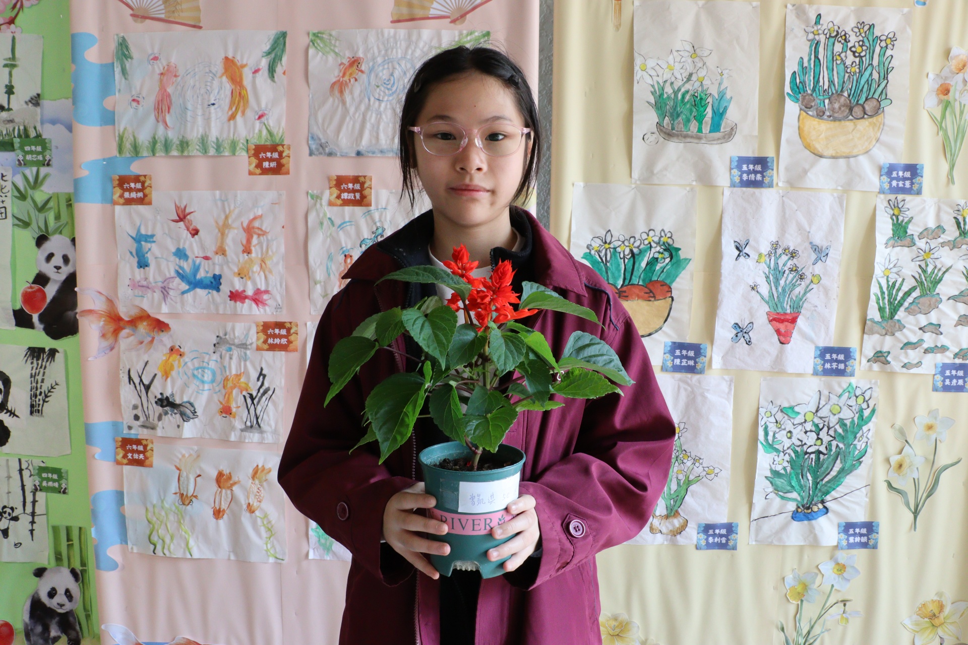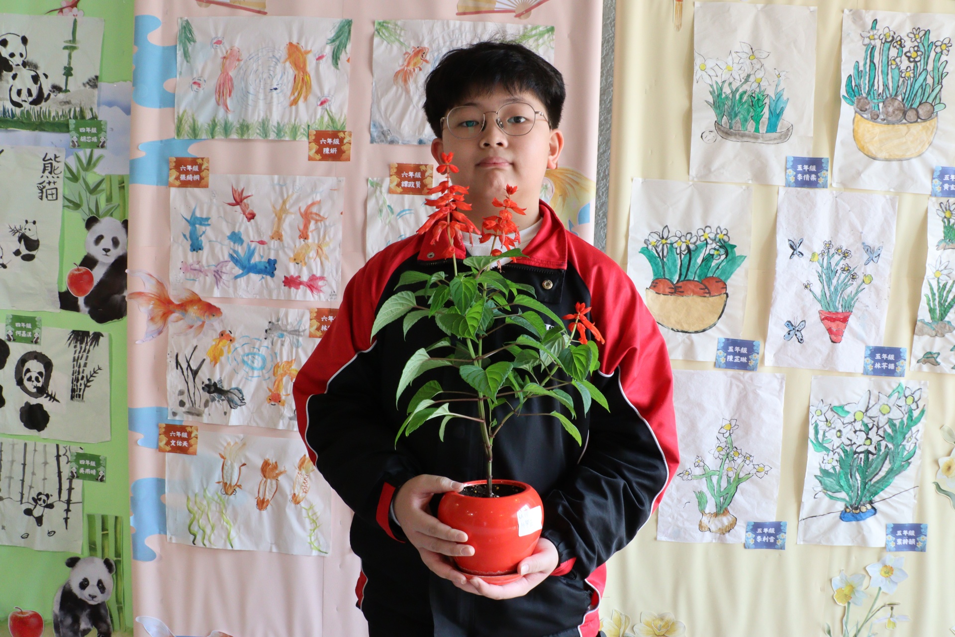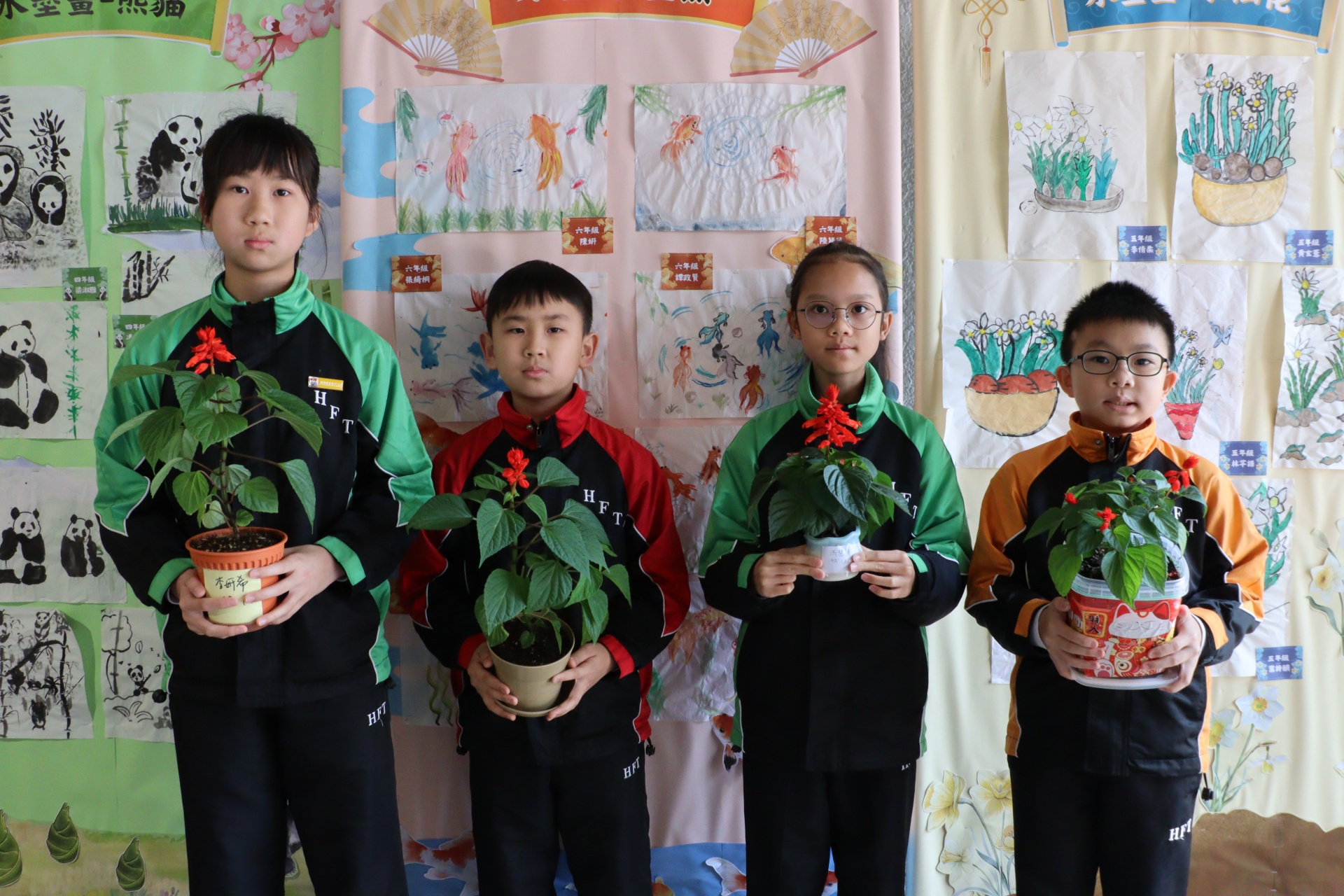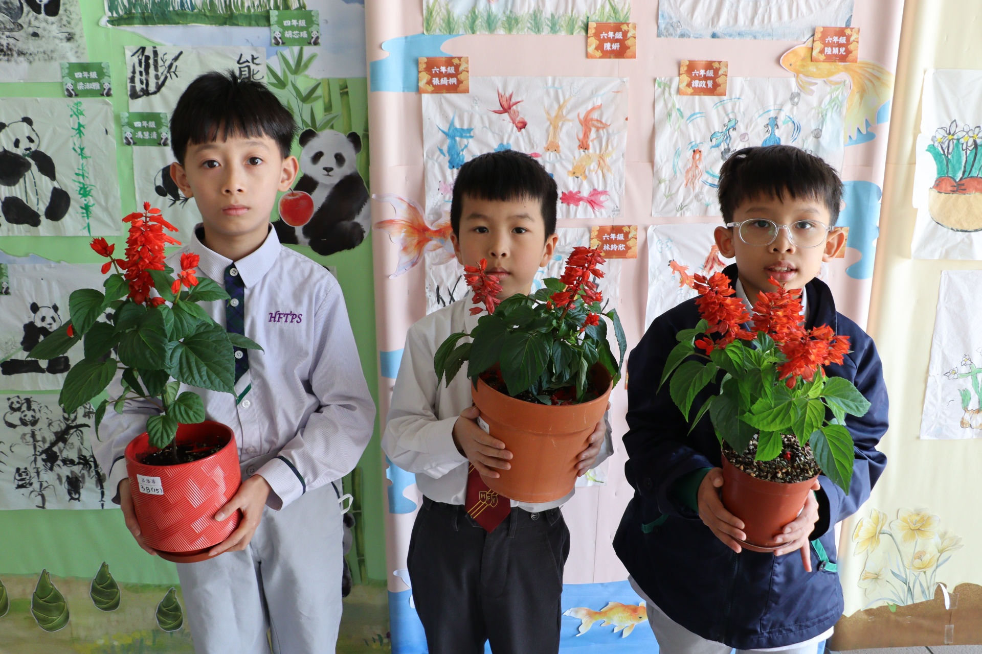 今年一人一花計劃中,學生們栽種的花苗是一串紅,又名爆竹紅,正合農曆新年的氣氛。同學們除了悉心照顧小幼苗,給它澆水,曬太陽外,還別出心裁地設計環保花盆,一展智慧和創意。