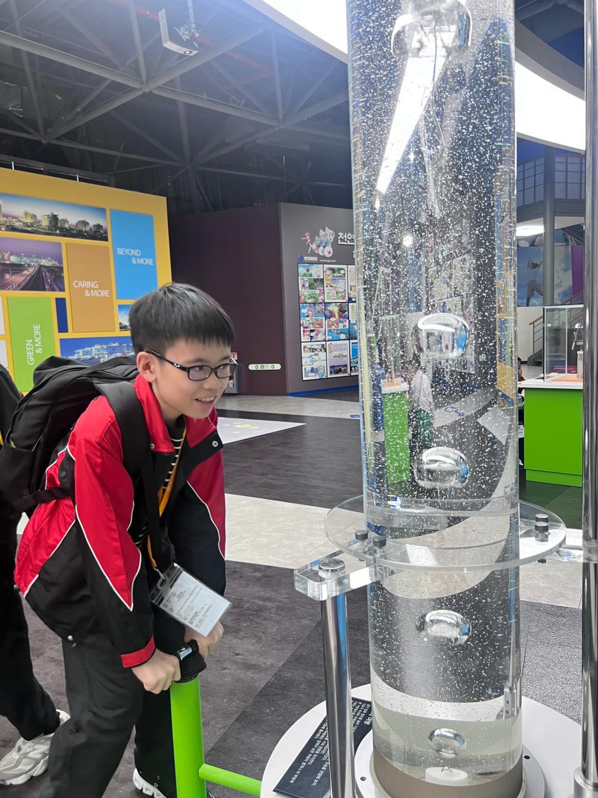 抵達仁川後 ,同學們第一站來到仁川瓦斯科學館 ,深入認識液化天然氣(LNG)  的原理與實際應用。透過互動展覽  與科學示範 ,讓同學們對能源 、環保  及科技發展  有了更立體的理解,原來 STEAM 學習可以這麼有趣 !